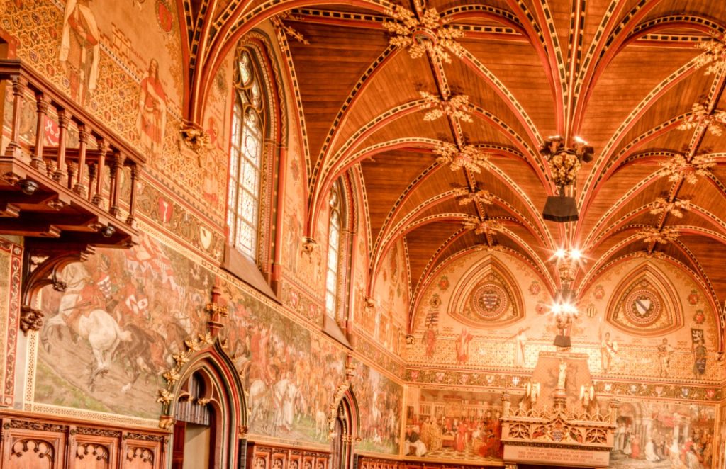 The city of Bruges was governed from this room for over 700 years and the building dates back to 1376 making it one of the oldest town halls in Europe. The room is considered a work of art in itself with statues, the wall paintings and an incredible ceiling. The entrance to the town hall is in The Burg with a ceremonial staircase leading to the Gothic hall above.