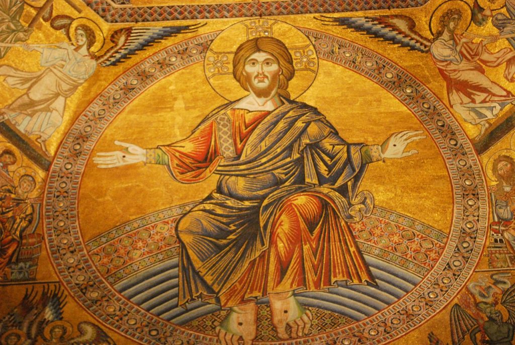 The mosaic ceiling features panels which tell key stories from the bible including the depiction of The Last Judgement which features the giant image of Christ. There are also stories from the book of Genesis and images of key moments in the lives of Jesus, John the Baptist and Joseph.