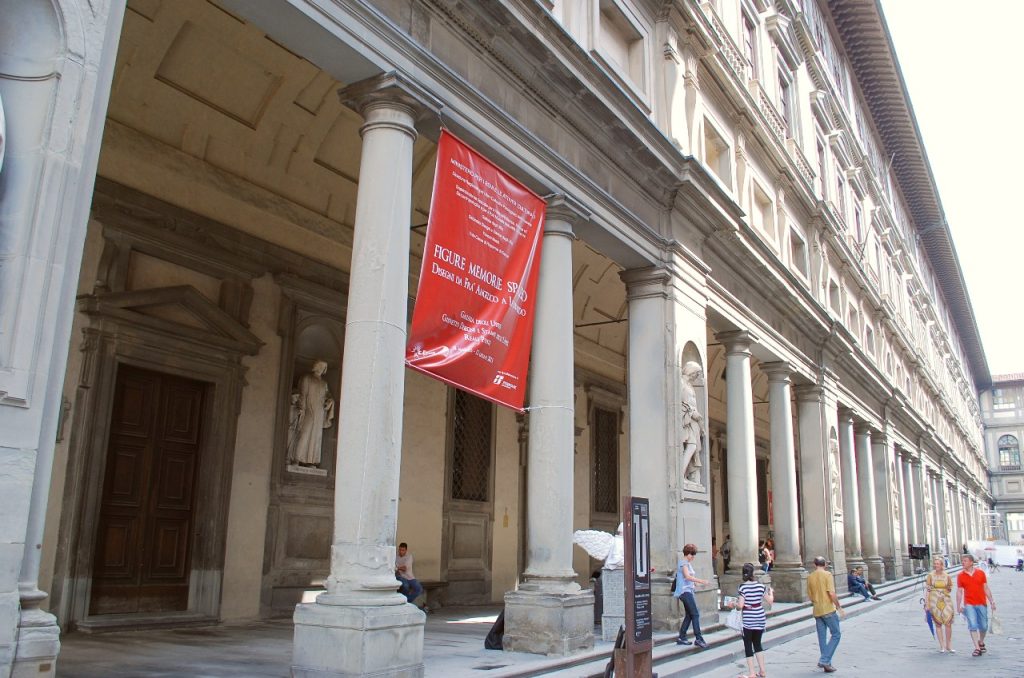The Uffizi Gallery is accessed from Piazza della Signoria right by Palazzo Vecchio.