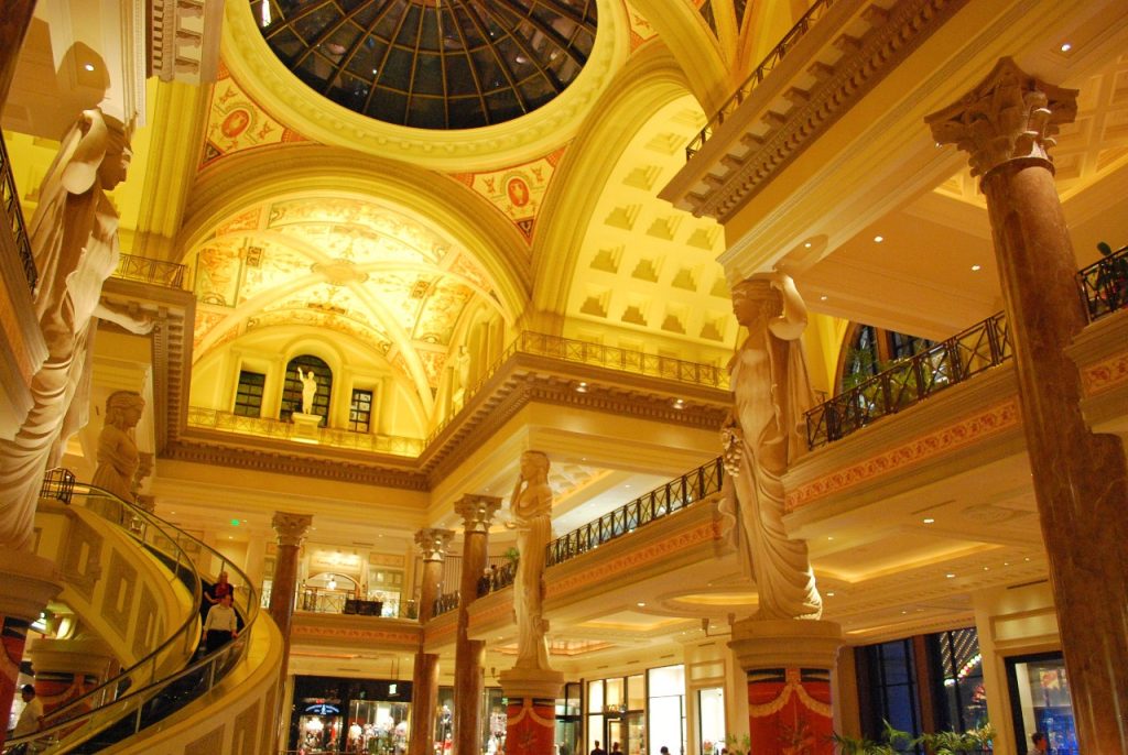 The Forum Shops – This is one of the biggest shopping centres on the strip and you’ll find it at Caesars Palace. The main entrance above is located directly on the strip, at the northern end of the Caesars plot. There’s also a second entrance at the rear of the Forum Casino inside Caesars gaming floor. There are 3 floors of shops at the main entrance, but most of the shopping is on one level. There are also two “performing” water features inside.