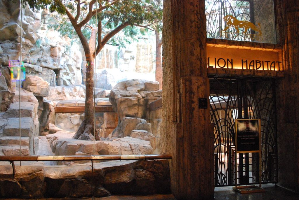 Inside the MGM Casino, the former lion habitat is now used for promotions and had a mock bedroom in it for a while. The photo above shows how it used to look! There’s not much else to see inside the MGM, but it does have the usual eateries to enjoy before you move on.